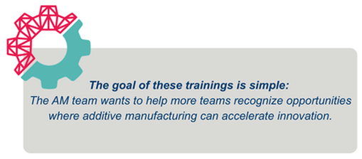 To help teams understand when and how to use additive manufacturing, the AM team has developed a series of training courses available through the BWU learning system.